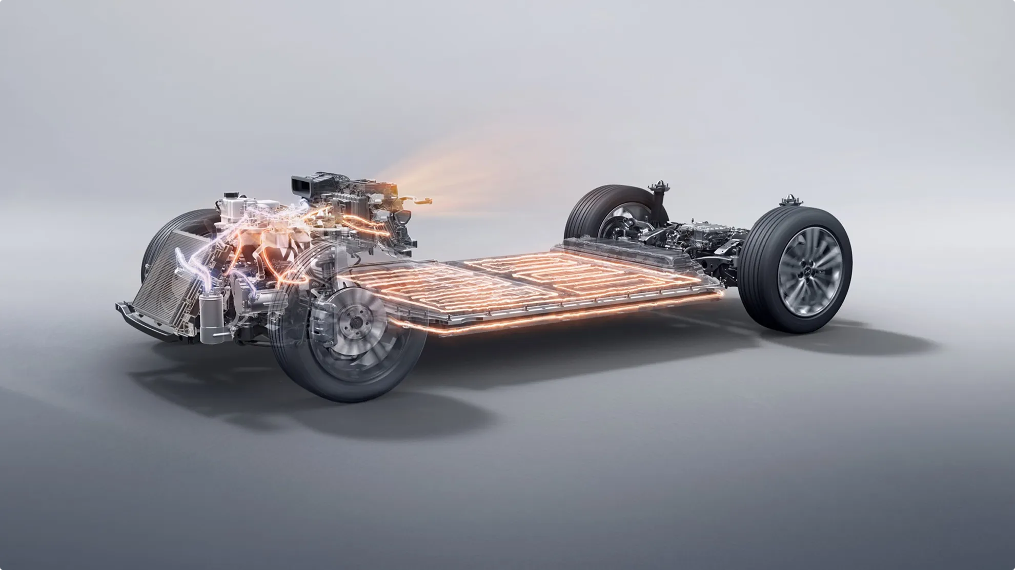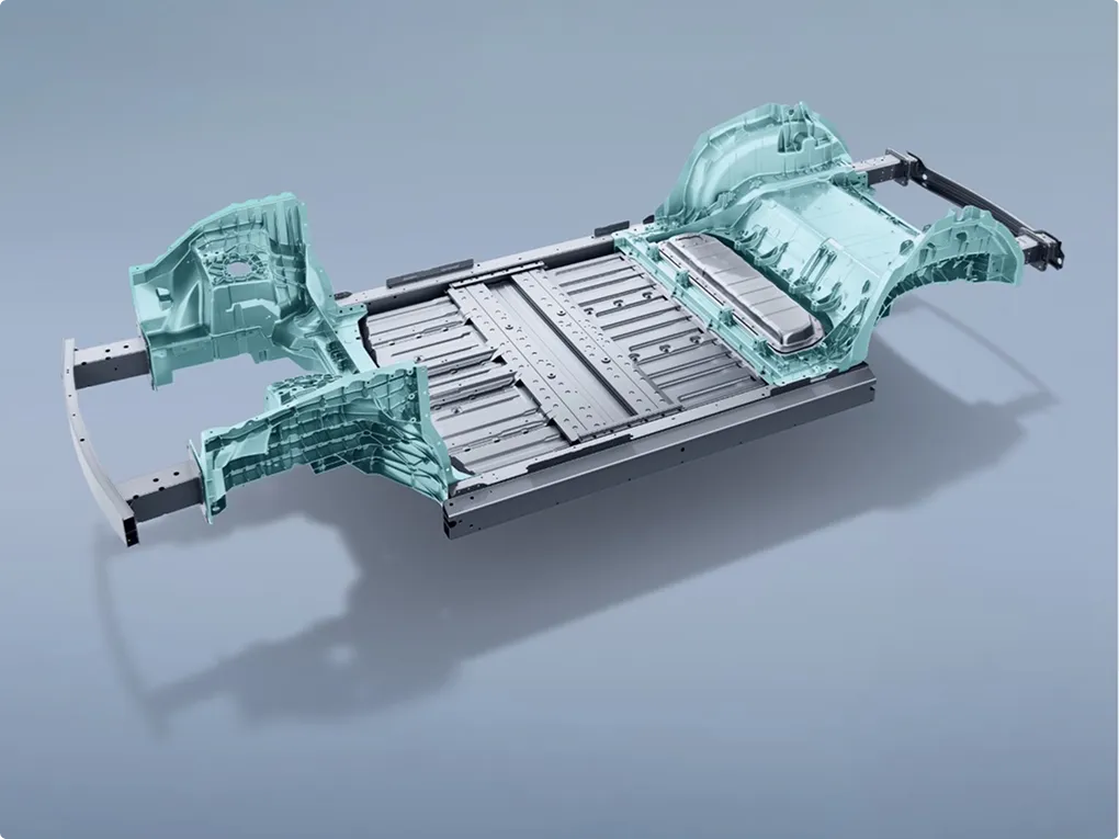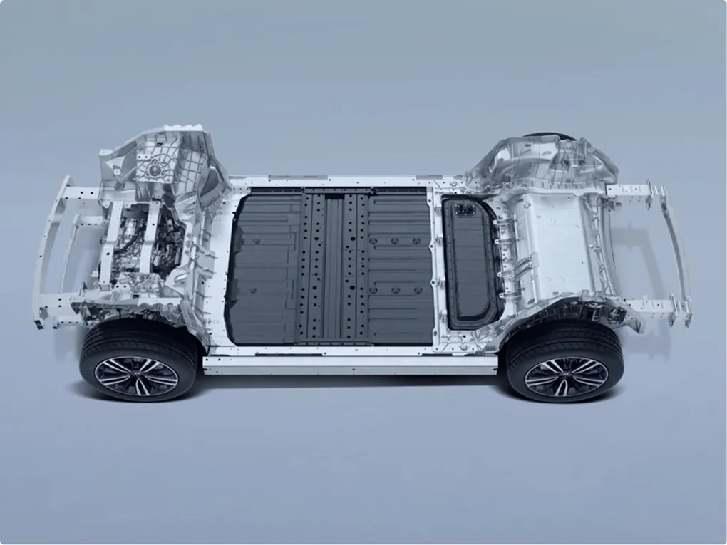 Baterai menjadi bagian integral dari sasis, dilindungi oleh struktur benturan tiga lapis dan pilar samping yang mampu menahan tekanan hingga 80 ton — memberikan ruang vertikal tambahan 5% untuk kabin yang lebih lega dan stabilitas berkendara optimal.